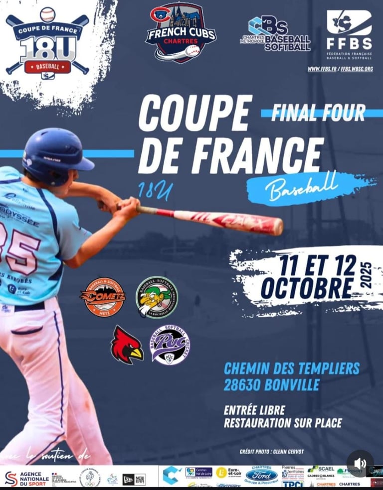 ⚾️Ce week end, 11 et 12 octobre , le C'Chartres Baseball Softball organise le final 4, 18U, au terrain de